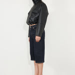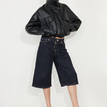 Our cropped bomber is defined by its oversized boxy fit. It is designed with raglan sleeves, which offers a relaxed rounded shape through the shoulders and is fully lined for ultimate comfort. Design features include a hidden centre front zip closure, funnel collar, chest flap pockets and side welt zip waist pockets. With functionality in mind, it is finished with a tie waist feature, to facilitate a personalised fit.