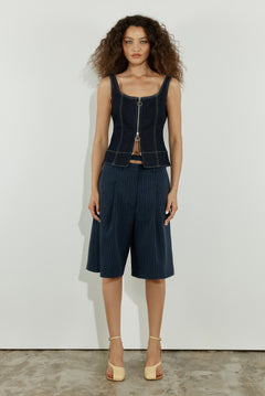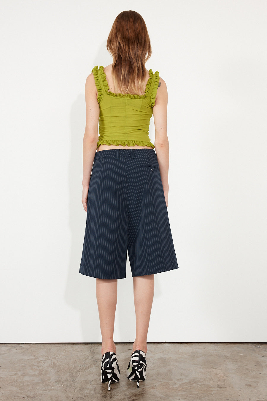 The frill bodice in Olive is our take on the classic corset. A sleeveless design, crafted from a stretch fabrication, ensuring ease of wear and a perfectly contoured silhouette. Designed to be worn for a close fit, it features subtle bodice panelling, a square neckline and soft gathered frill edges.